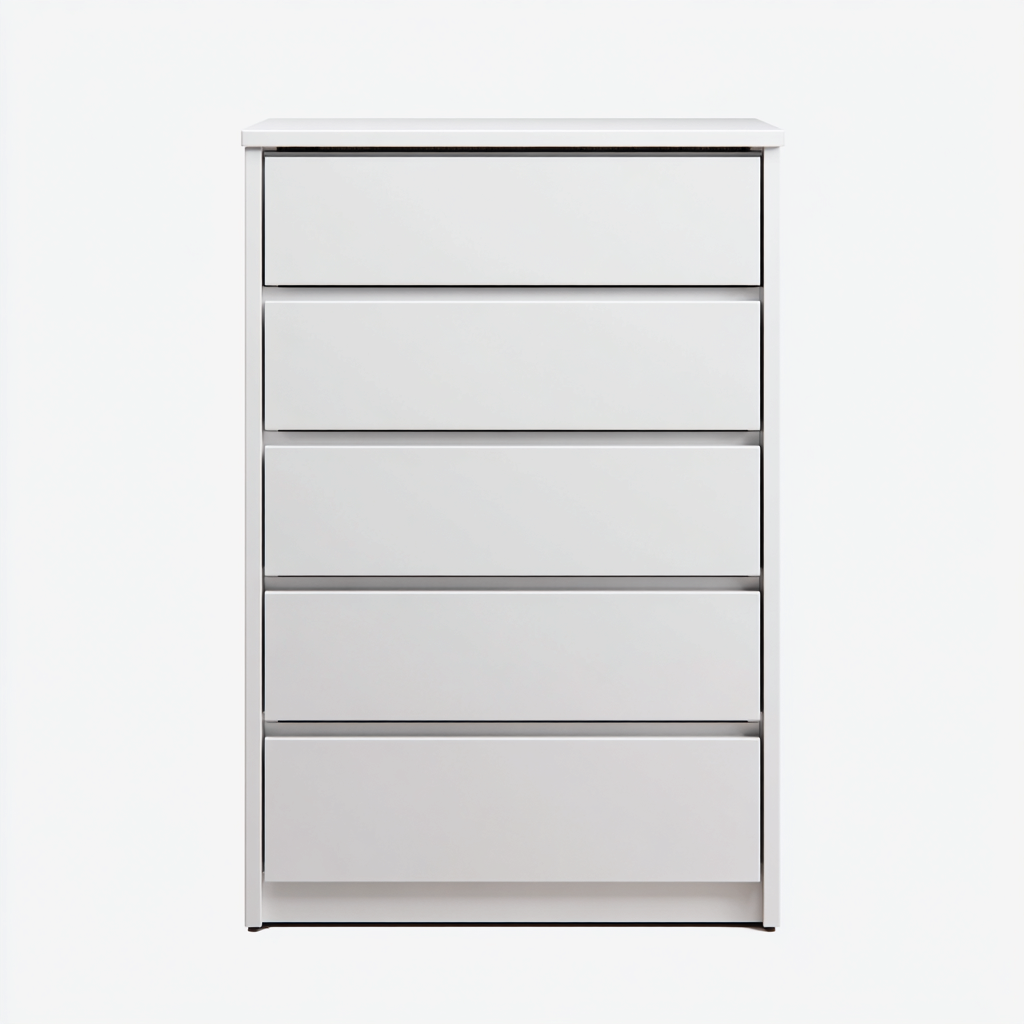 Les cinq tiroirs permettent de ranger vêtements, linge ou accessoires de manière structurée. Le format vertical optimise l'espace au sol tout en offrant une capacité de rangement adaptée à un usage domestique.