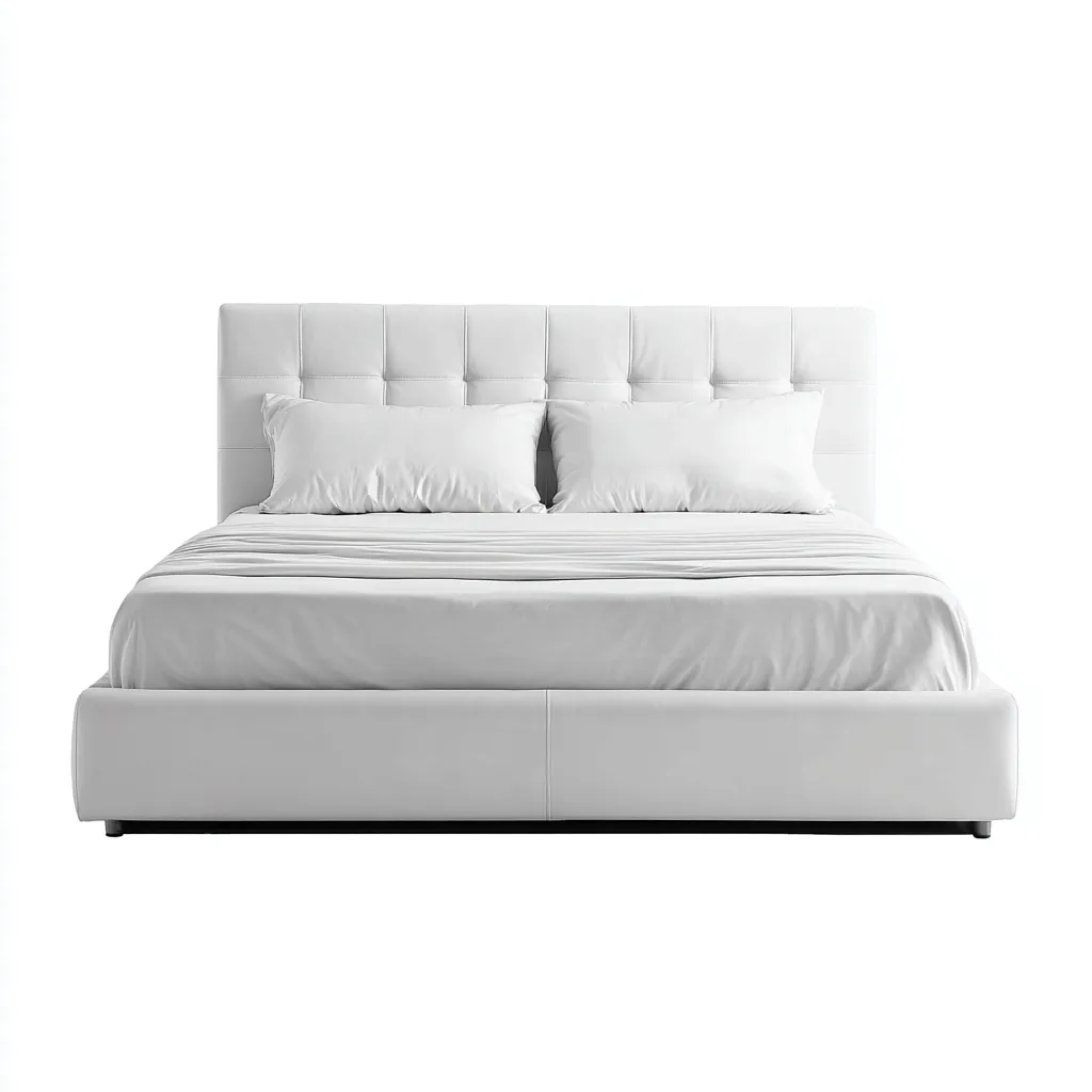 La structure est recouverte d'un revêtement en similicuir blanc, associé à un rembourrage uniforme pour un rendu soigné. Les surfaces sont lisses, avec des coutures régulières assurant une finition nette et durable.